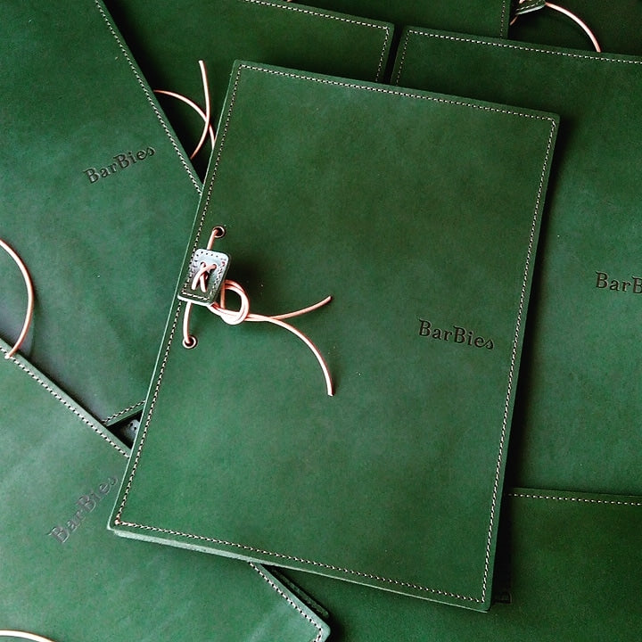 多くの人の手に触れるほど、深みが増す牛革のメニューブック。色味や光沢、手馴染みの良さが魅力です。無駄を省いた機能的でシンプルなデザインは、洗練された印象と、業務用としてのコストバランスも良く、飲食店のお手伝いをいたします。